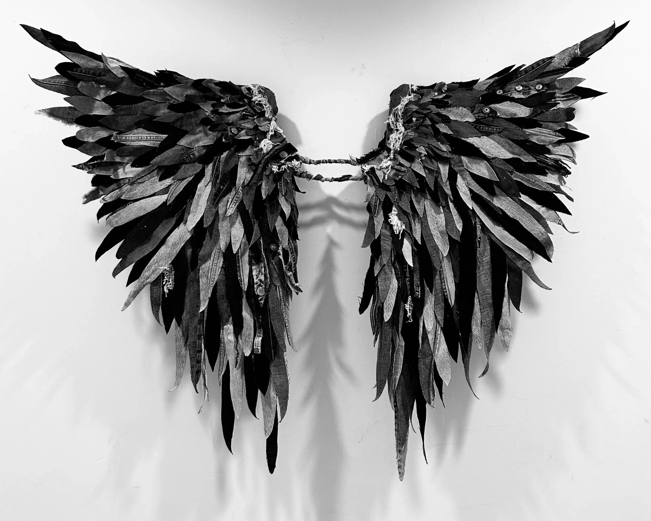 The subject matter of each body of work guides her choice of materials and form, leading her to experiment across a wide range of media, including denim-based mixed media, painting, digital work, ink drawing, sculpture, and murals.